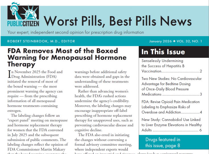 side effects, and pharmaceutical industry influence over the FDA. We do not accept funding from